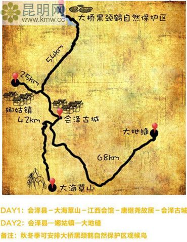 DAY1: 會澤縣—大海草山(42公里,1小時)—江西會館(41公里,1小時)—唐繼堯故居(80米)—會澤古城(90米)