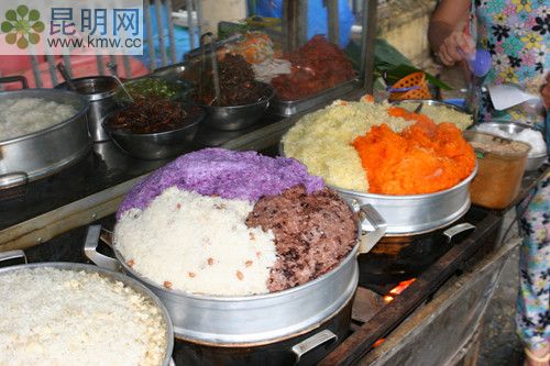 有著悠久的歷史,是壯族人民日常生活中必不可少的美味佳肴。花米飯色澤鮮艷誘人,裝在碗里,猶如一朵初放的紅玫瑰,馨香四溢,沁人心脾,吃時沾上白糖或紅糖,味美可口。滿甄子紅、黃、藍、橙、黑,鮮艷的色彩在濃濃蒸氣中熠熠閃爍,純粹的香味滿屋飄溢。