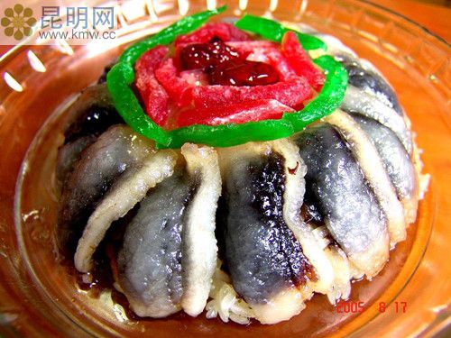 當地一道傳統名菜,已有200年的制作歷史。豆沙肉晶瑩透亮,味道香甜,油而不膩,肥嫩可口。