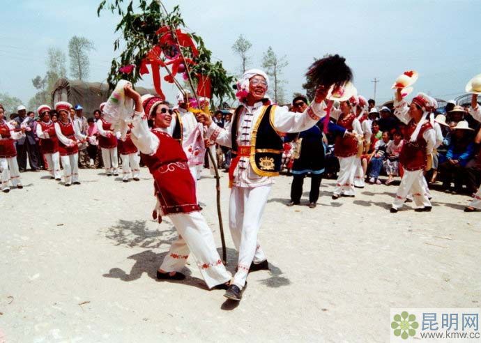 傳統上,每年農歷四月二十三日至二十四日,剛好是種植水稻的農忙節令之前,又恰值天氣和煦,山川秀麗,生活在蒼山洱海一帶數百個村莊的白族民眾,不分男女老少,都插花戴朵,濃妝淡抹,身著節日盛裝出席。繞三靈隊伍以村為單位,隊伍分為三部分:每隊前有為一男一女(有時也為兩男或兩女)的老人(稱花柳樹老人),頭纏大白包頭,身穿雪白對襟衣,著彩色綢褲,腳穿綴有紅絨球的彩線涼鞋,打扮得十分風趣,二人共扶一枝楊柳,柳枝上掛一個葫蘆,一塊彩綢,一人執拂塵,一人執紅扇或甩白毛巾,二人邊舞邊對唱白族“花柳曲”,唱詞幽默詼諧。中部隊伍除了吹笛子的一人外,有男女舞者數十人,有的唱調子、打霸王鞭、敲八角鼓、雙飛燕。隊尾則由吹樹葉的一人和數十位亦歌亦舞、手執扇子或草帽的婦女組成。大家排成“一字長蛇陣”,在花柳樹老人的帶領下,形成數萬人參加的春游活動,于農歷四月二十二日早晨,聚集到大理古城城隍廟,點燃香燭,準備行裝。人們滿懷熱情,希望通過自己虔誠的祭拜,使今年風調雨順,秋后五谷豐登;也祈禱闔家平安。