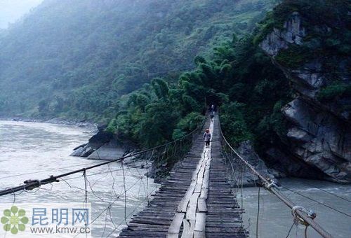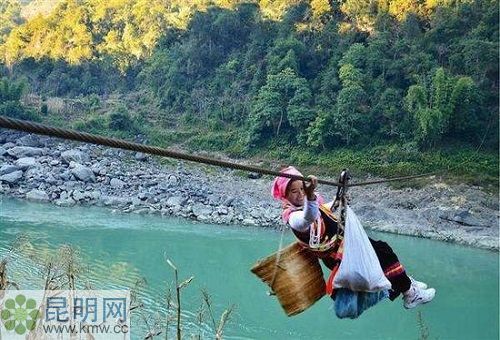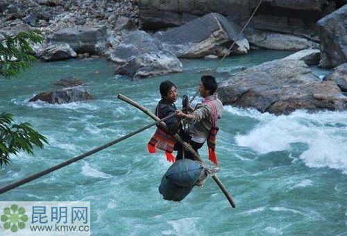 溜索大都架設(shè)在江面相對(duì)較窄的地方,怒江上的榴索有兩種:平溜和陡溜。平溜的溜索兩頭一樣高,平越大江,來往都可過,但溜到江心后必須雙臂用勁,攀 到對(duì)岸。陡溜有一定的傾斜度,一頭高,一頭低,自然滑向?qū)Π叮州p快。古老的溜索,還記錄著獨(dú)龍族捍衛(wèi)祖國(guó)和民族尊嚴(yán),與帝國(guó)主義侵略者浴血奮斗的歷史。