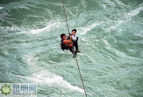 沒有溜過的人要想獨(dú)自溜第一次,是比較危險(xiǎn)的。江中滯急的水流形成的激渦、激浪在岸邊看著已是心驚,何況只靠一根粗草繩把身體與吊鉤結(jié)在一起, 凌空江面上而無任何保護(hù)。喜歡刺激者最好請(qǐng)當(dāng)?shù)厝讼葞懔镆淮巍H绻噶铮话阍诳斓綄?duì)岸的一定距離時(shí)就要擺動(dòng)吊鉤以增加摩擦來減速,以免過快而撞到對(duì)岸 的石頭、樹木而受傷害。