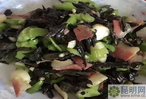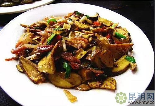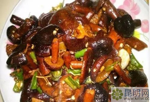 青頭菌與宣威火腿及其相配。采用火腿的肥肉,用小火炒出油,再加青頭菌爆炒,出鍋前加入少許青椒,火腿的香味將青頭菌的鮮美充分地調動出來,炒出來的湯汁用來拌飯極妙。
