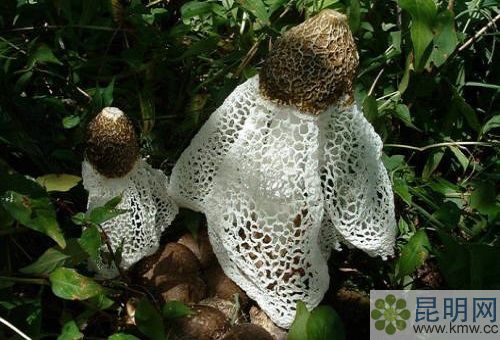 竹蓀又名竹笙、竹參,是寄生在枯竹根部的一種隱花菌類。常見并可供食用的有4種:長裙竹蓀、短裙竹蓀、棘托竹蓀和紅托竹蓀,其中以云南的紅托竹蓀最為味美。形狀略似網狀干白蛇皮,它有深綠色的菌帽,雪白色的圓柱狀的菌柄,粉紅色的蛋形菌托,在菌柄頂端有一圍細致潔白的網狀裙從菌蓋向下鋪開,被人們稱為“雪裙仙子”、“山珍之花”、“真菌之花”、“菌中皇后”。