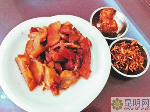 配上咸菜的油炸肉(圖片來源:個舊時訊數字報)
