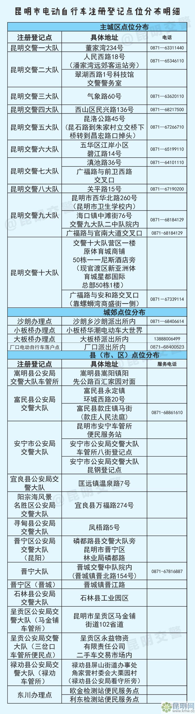 從4月1日起,凡符合“新國標”的電動自行車,并在我市公示的《電動自行車產品目錄》內的,均可在昆明市公安局交通警察支隊設置的電動自行車注冊登記點進行辦理。