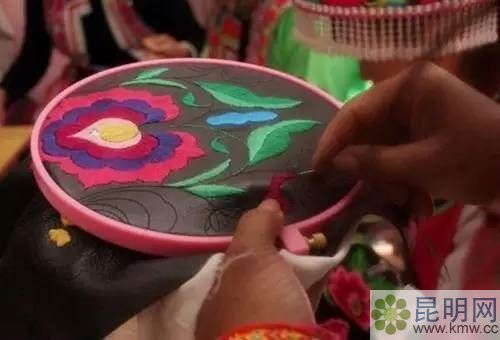 楚雄地區彝族女裝為右大襟短衣和長褲,少數地區上著對襟衣,下著花裙。工藝以鑲補、平繡為主,圖案多為花卉。