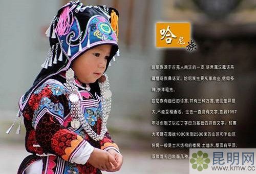哈尼族男子頭裹黑或白色包頭,老人戴瓜皮帽,穿對襟上衣和長褲。穿布鞋或用木板、棕繩制作的木板鞋。西雙版納的哈尼族男子身穿右開襟上衣,沿大襟鑲兩行大銀泡。