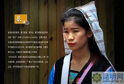 基諾族男子穿寬褲和無領對襟白衣。女子上著繡有各色圖案的白色背心,外罩無領長袖外衣,下穿黑色紅邊的合縫裙子,身背大麻布袋。基諾族崇拜太陽,日月花飾就是基諾族人民審美心理的歷史積淀,它蘊藏著豐富的文化內涵。