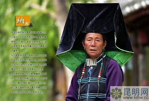 寧蒗納西婦女穿短衫,下系長可及地的百褶裙,披羊皮,裹青布頭巾,戴金、銀、玉石等制作的耳環和手鐲,并喜歡束“羊皮帶”或“圍腰帶”。