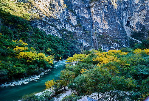 通天峽是香格里拉大峽谷的一大支峽,從谷底至峽頂長約4000米,峽谷呈U字形,對面兩山體距離相近;兩邊懸崖絕壁成垂簾狀,高達(dá)千米,直聳云天。