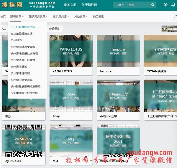 當然,如果想足不出戶的就完成以上這些工作,也是有辦法的。 專業的人做專業的事,比如搜檔網,就是一個搜集和整理了廣州杭州深圳遼寧常熟數以萬家的服裝批發檔口老板微信的網站。